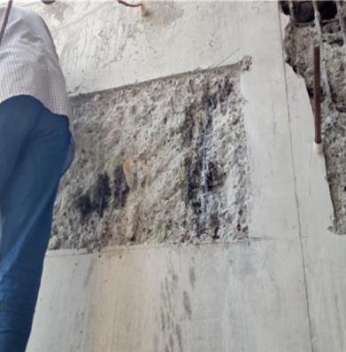 (3)将修补区域内混凝土基层表面浮尘、油污清理干净,并剔除疏松部分。