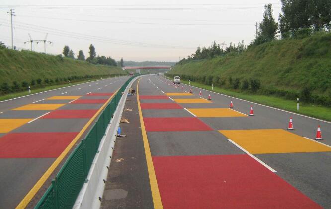 3.弯道路面,不同半径和不同长度的弯道是安全行车的一大隐患,这些蹄段的抗滑性能不足也是交通事故发生率较高的重要原冈之一。彩色应急蹄表处理系统可明显的提高该路段抗滑性能,明显减少交通事故的发生。对于这样的弯道,建议采用断路铺路和满铺路的处理方案。