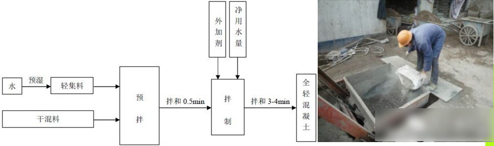 根据设计要求,试配KH全轻混凝土,确定其轻粗骨料、轻细骨料、粉料、水及外加剂等的掺量;