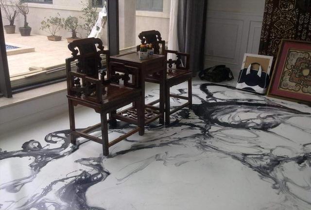 又有新型地面材料大火,这种水墨画地坪,有中国风,便宜又耐磨