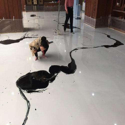 1、基础地面上先用环氧找平,等找平层干了之后,在上面做水墨流淌风格艺术地坪。
