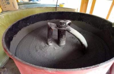 (4)把拌和均匀的灌浆料灌入模板中,务必坚持从一个方向灌入,可以适当的借助钢钎导流或者竹条,进行轻轻敲打或适当的振捣。