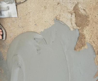 灰浆的稠度可通过降低A组份用量来调节。抹面灰浆只需使用90%A组份。在干净容器内慢慢向液体组份中添加粉剂,慢速搅拌。