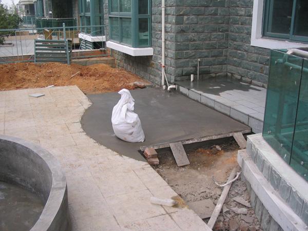 庭院现浇水泥地坪,学外国人多加一层钢丝网,比邻居家耐用几十年