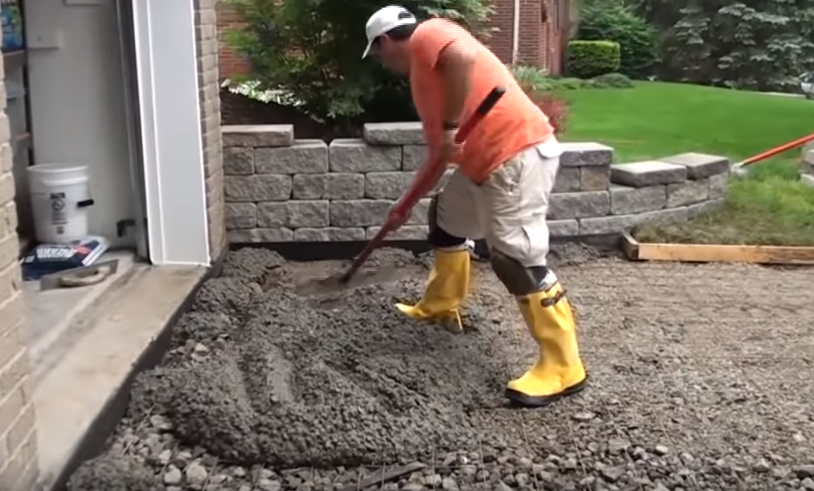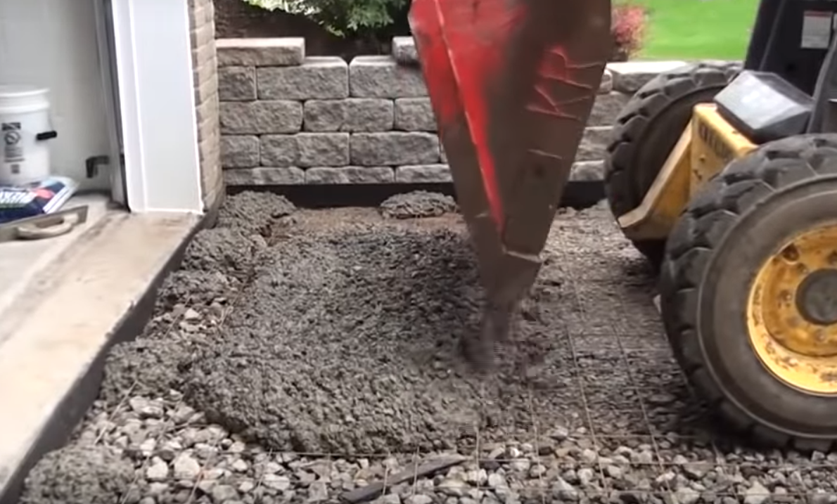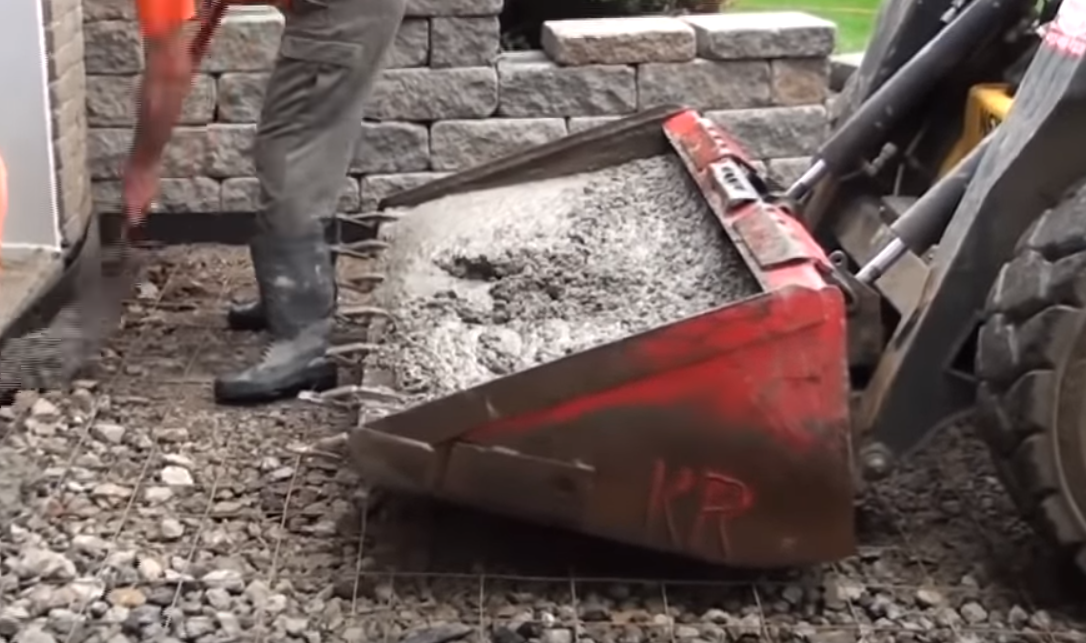 Step2:将提前利用机器搅拌好的混凝土倒入钢丝网上面