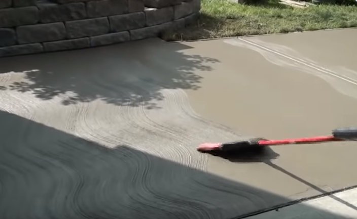 Step6:最后利用扫帚做出想要的纹路,洒水养护即可