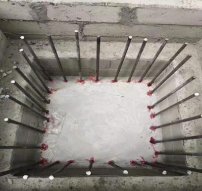 (3)注入三分之二即可达到最好的植筋效果旋入钢筋或螺杆,将钢筋或螺杆旋入孔中,并上下抽动几次,以保证粘胶的均匀,不停的抽动,增加受力面积,最大范围使胶料粘接在钢筋或者螺杆上固化