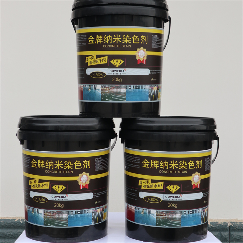 混凝土染色剂为渗透型彩色液体。混凝土染色剂不同于酸性混凝土着色剂。染色剂不与混凝土产生化学反应。染色剂中含有纳米成分离子,可以渗透到混凝土1-3mm深度。染色剂具有一定的挥发性,并且颜色明亮,色彩多达红色、黄色、蓝色、绿色和黑色等各种颜色。可以制作多种艺术图案,为混凝土创造一个多彩的空间。