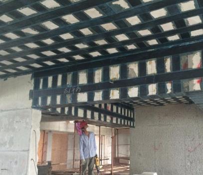 (2)浸渍胶用量过少,对碳纤维布浸胶不充分,混凝土与浸渍胶和碳纤维布没有成整体。