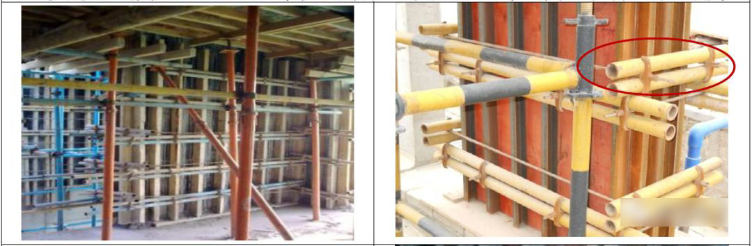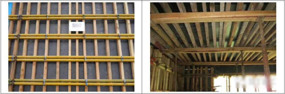 7.1 墙柱侧模采用通长标准木枋或槽钢、方钢,间距≰200mm,背枋必须顶到板底。