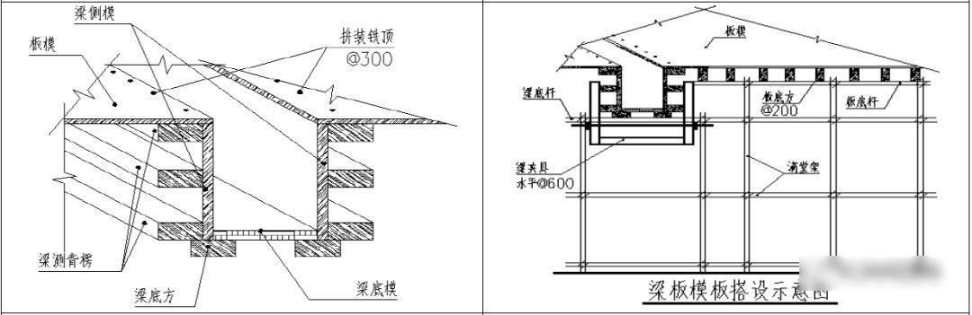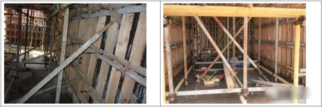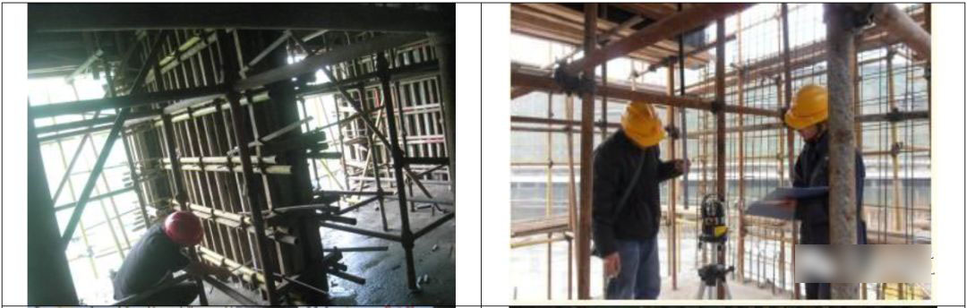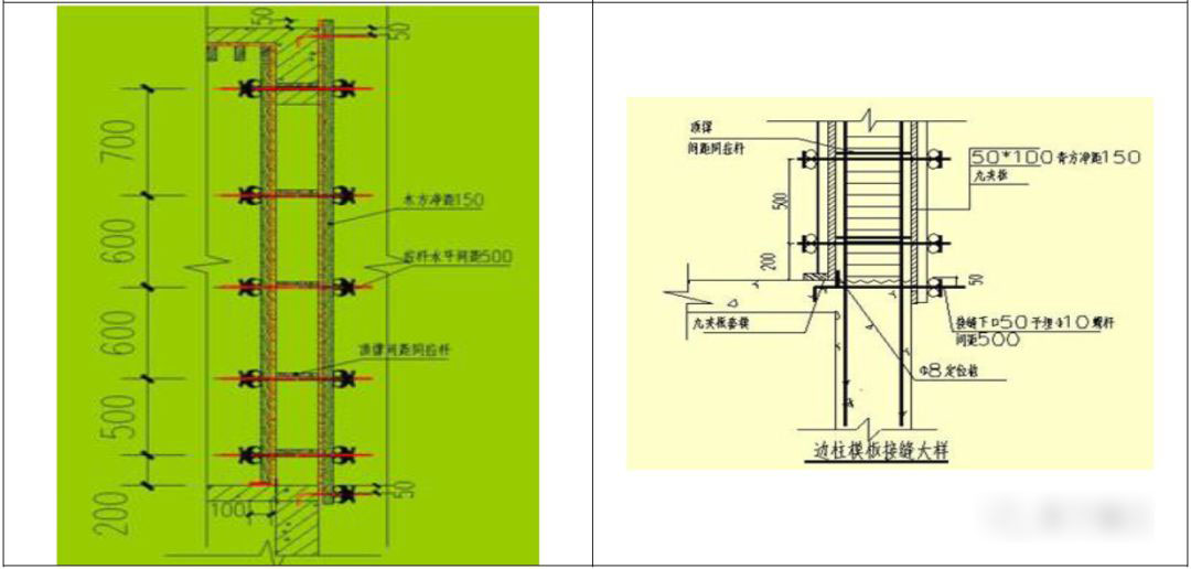 8.1 为了避免梁与墙模板交接处出现错位,影响平整度,梁侧面水平背枋应伸过梁与墙柱模板接缝处10cm-15cm,剪力墙侧面阳角背枋在梁底位臵截断。