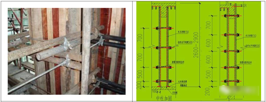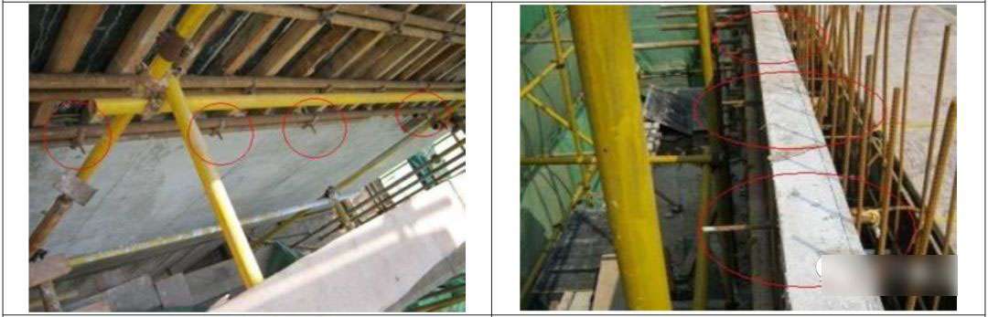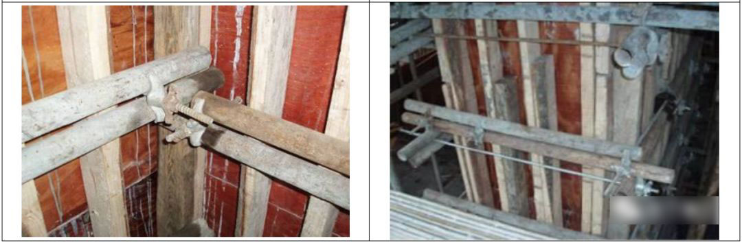 7.5 加固螺杆处必须设臵内撑并固定牢固,加固时应用力适当,避免模板内嵌咬肉。
