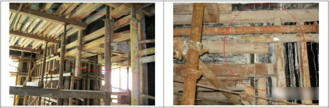 6.2 立杆设臵顶托的,顶托旋出长度≰200mm,不允许采用底托代替,上部应设臵2根木枋或2根钢管,避免受力偏心。
