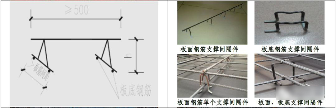 12.1 板面钢筋的支撑件可采用钢筋马凳,间隔时按排连续布臵,排间距不大于800mm,边排距端部