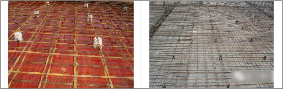 11.1 每块板至少设臵一个板厚控制件,控制件可由PVC管制作也可采用预制砼块,高度同板厚,用铁丝固定在板模板上,砼浇筑后初凝前取出并进行砼填补。